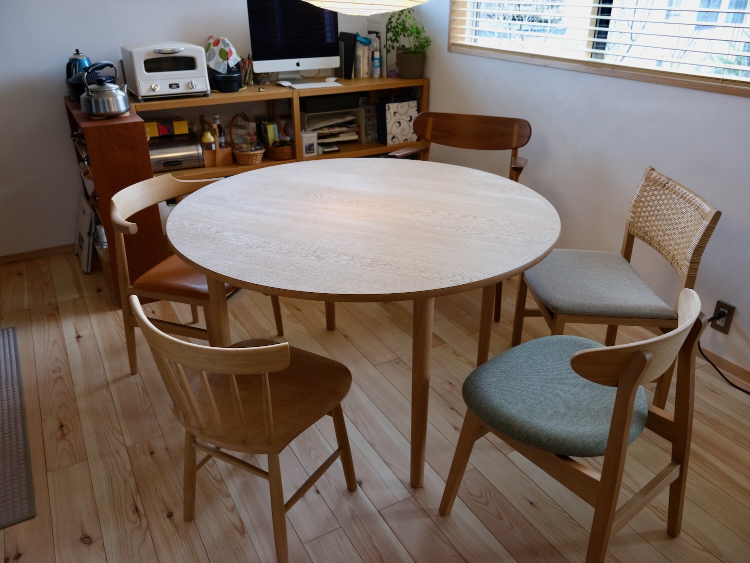 円卓はφ1200mm、楢材オイル仕上げ。