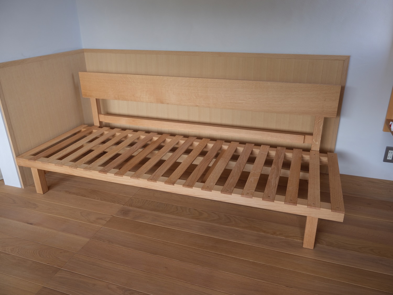 材は楢の3枚接ぎで1枚あたり400mmの幅広材。