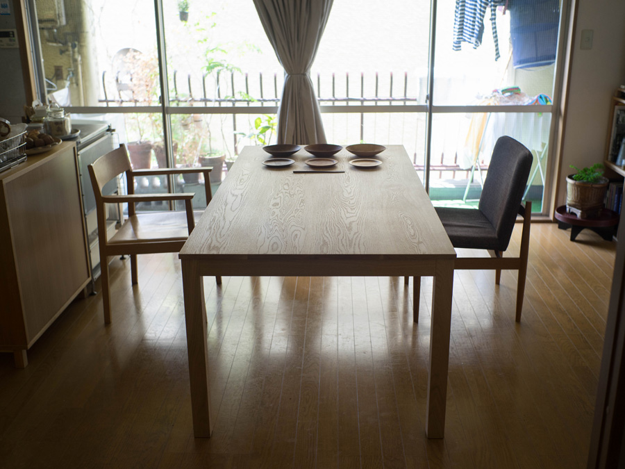 dining table2は天板を薄く見せ、天板と脚の関係などもわりとタイトにしてすっきりしたデザインにしていました。