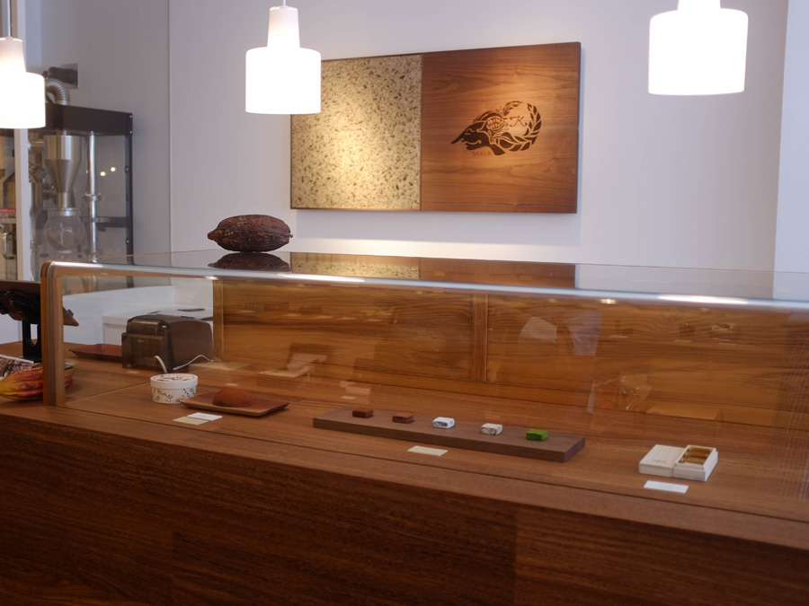 ショーケースとカウンターはそのインドネシアにちなんだ木材を使用しました。