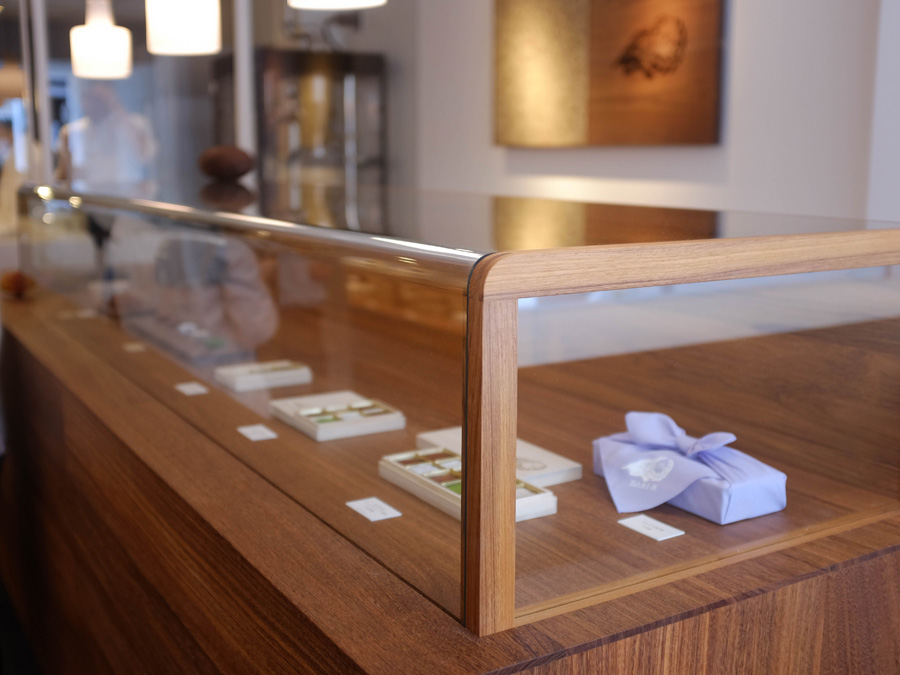 ショーケースのガラスは波多野さんの意向で最小のRの曲げガラスを使用しました。