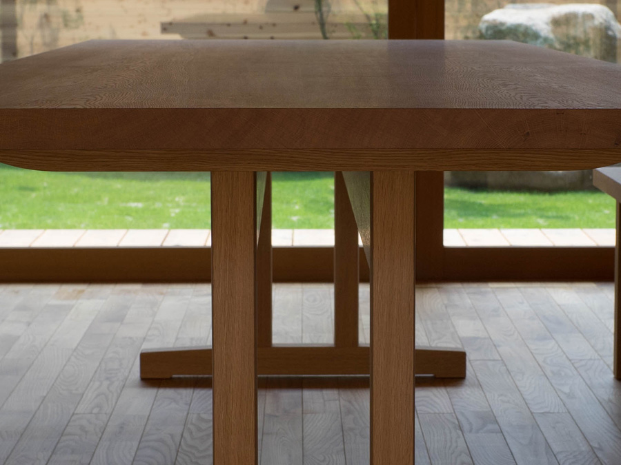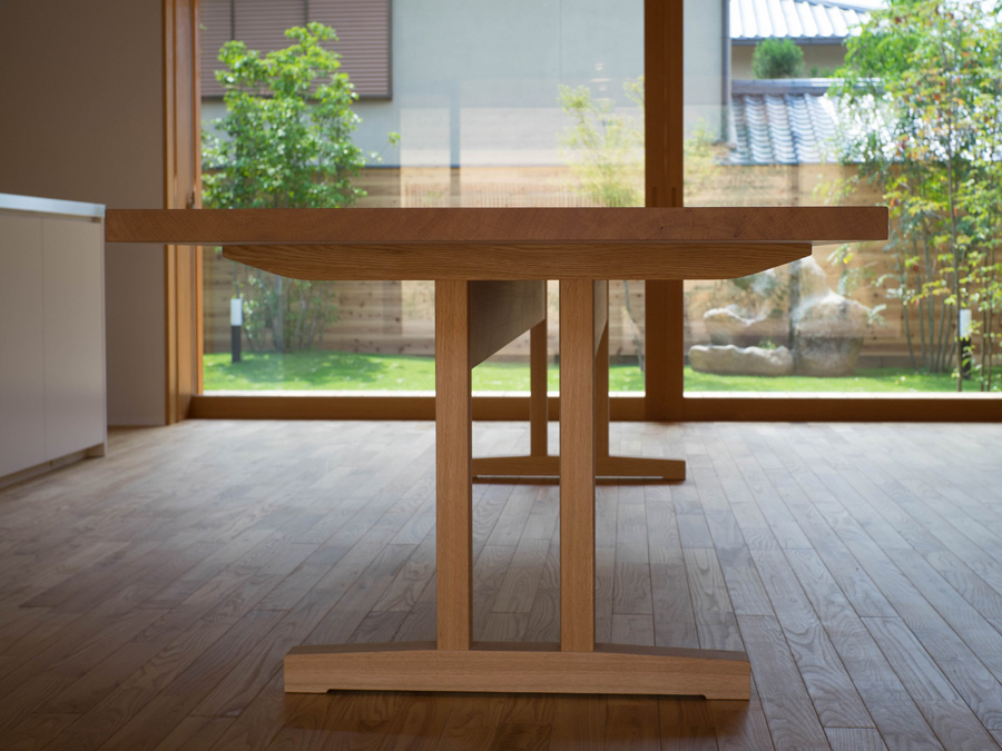 ワイドが2mを超える大きなテーブルは天板が自重で垂れてしまうので、短手方向の反り止めを長手方向の貫で支えるこの構造がとても理にかなっていると思います。