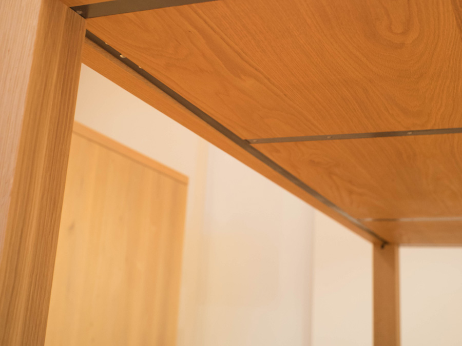 長手方向は、アングルを入れてテンションをかけて木材のたわみを打ち消しています。