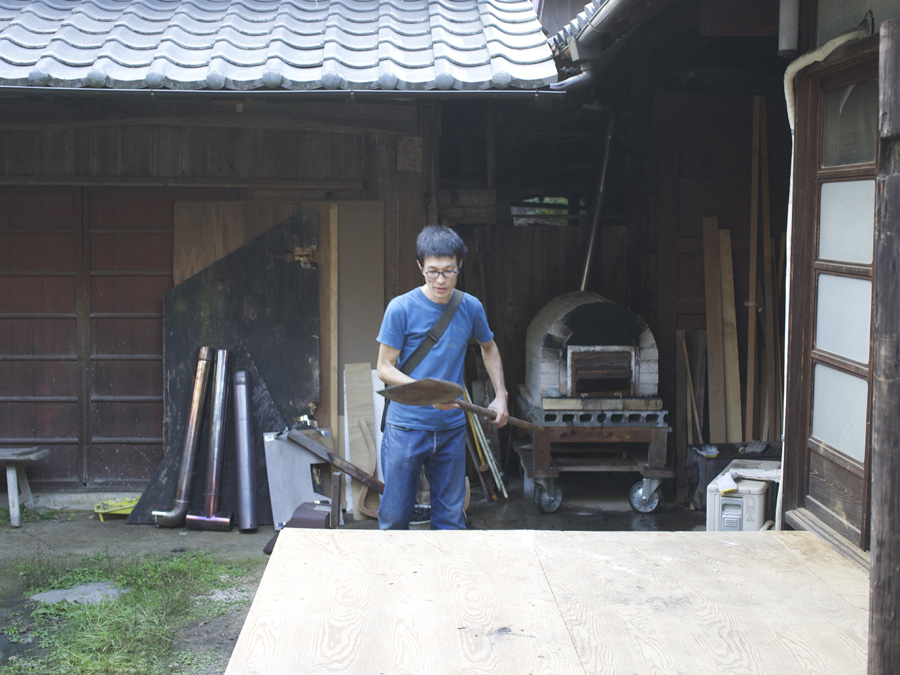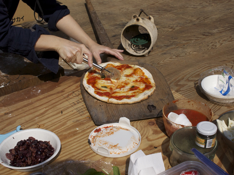仕事で発生した廃材を処理すると言う名目で作られた、石釜。