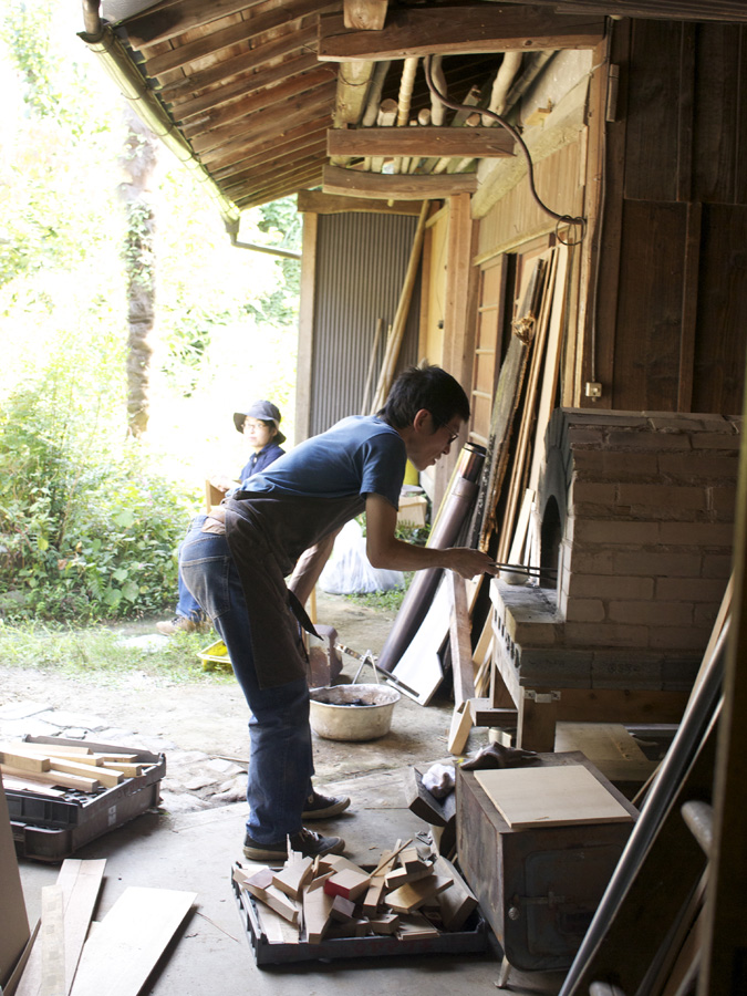 新しい伏見の作業場には持って行く事が出来ないので、最後のお別れに製作所スタッフ山口、友人夫婦と窯を焚きました。