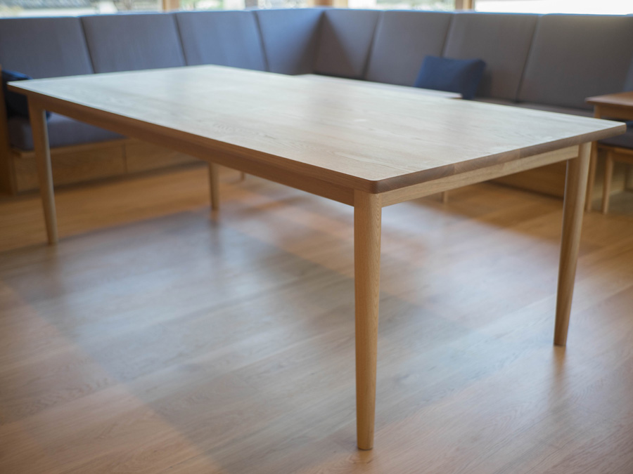 丸脚のダイニングテーブル、ホワイトオーク材。