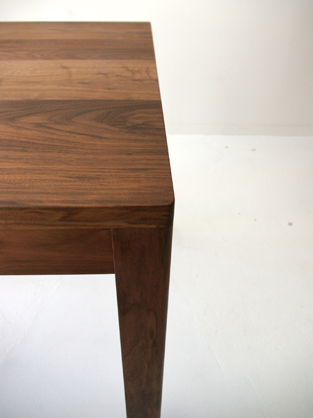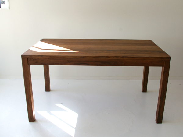 テーブルは天板を出来るだけ広くしたいけれど、部屋に設置した時に圧迫感がないように脚と天板が面になるように設計しました。