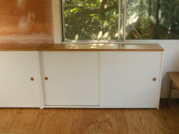 もう一方の壁面にはこちらも展示台を兼ねた戸棚を製作。