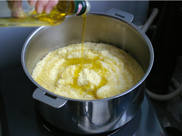お湯で蒸らしたあと、オリーブオイルであえるとふっくら仕上がります。