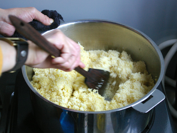 こちらは、メインの煮込み料理と合わせていただく、クスクスの準備。