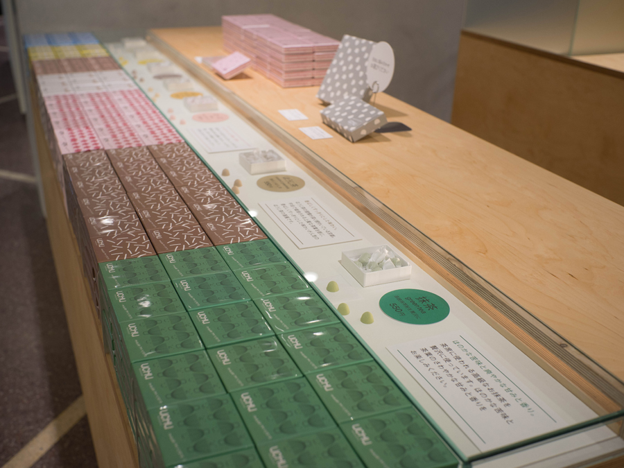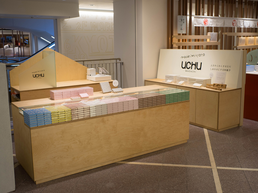 UCHU wagashiさんの新しい店舗京都タワーサンド店の展示用の什器などの製作を担当させていただきました。