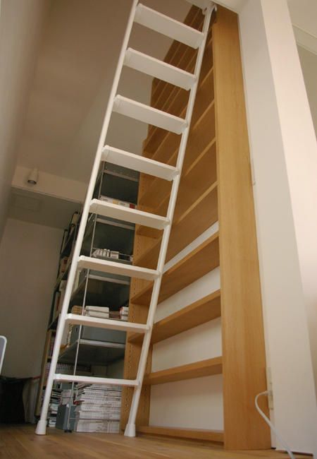 ロフトのはしごと壁面の間のスペースを活用するための本棚をオーダーいただきました。